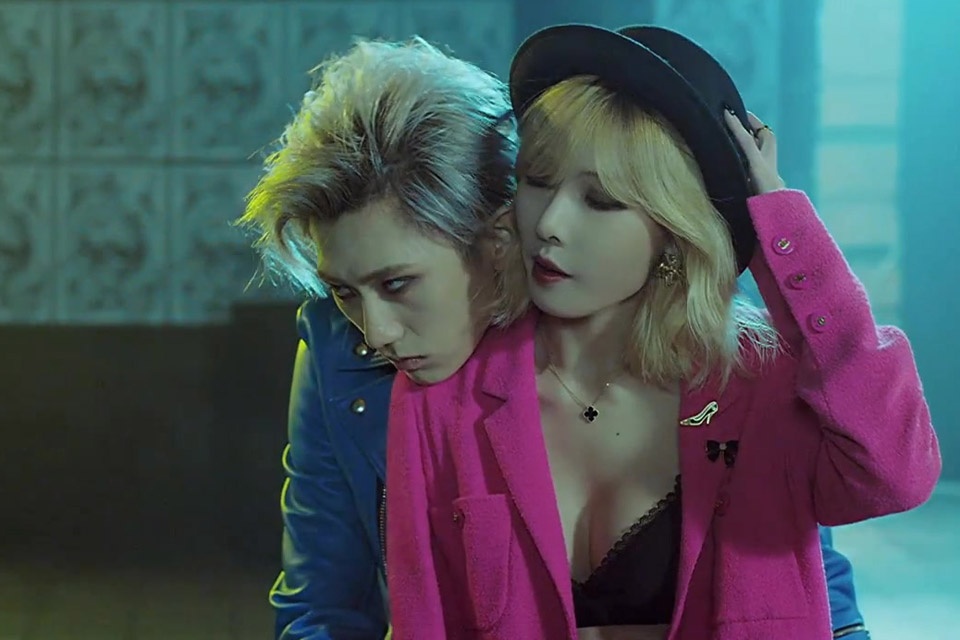 | Tái xuất với MV Now trong vai trò thành viên nhóm nhạc Trouble Maker, Hyun A đã khiến dân tình xôn xao khi có những hành động tình cảm nóng bỏng với bạn diễn. |