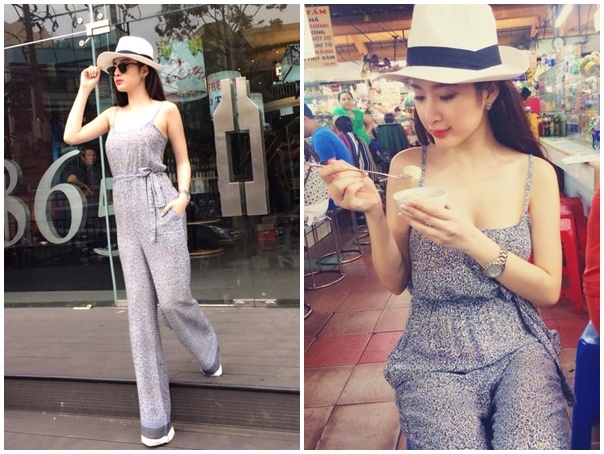 Họa tiết hoa mùa hè trên bộ jumpsuit hợp vóc dáng.