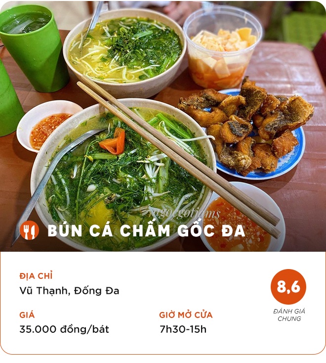 Đức Hoàng: "Quán tuy nhỏ nhưng rất đông khách. Không gian bên trong chỉ đủ chỗ cho khoảng 10 người, còn lại phải ngồi bàn vỉa hè. 2 món chính là bún cá chấm và bún cá chan. Đánh giá chung là cá giòn, dày miếng, màu đẹp mắt mà không bị cháy. Nước bún với mình là vừa, bạn nào thích vị đậm đà có thể thấy hơi nhạt".