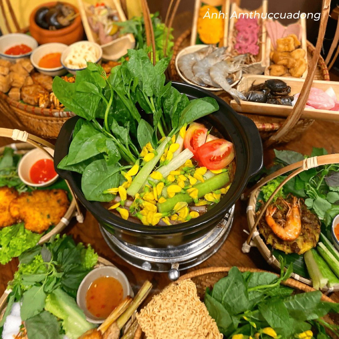Lẩu bò, cua đồng hay riêu cua là những hương vị dân dã, kích thích vị giác mọi tín đồ ẩm thực. Nước dùng nóng hổi, đậm đà và đồ nhúng lẩu đa dạng, tươi ngon khiến cuộc vui cuối tuần của bạn thêm phần trọn vẹn.