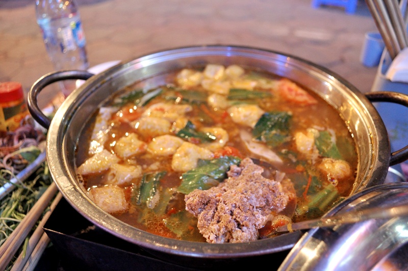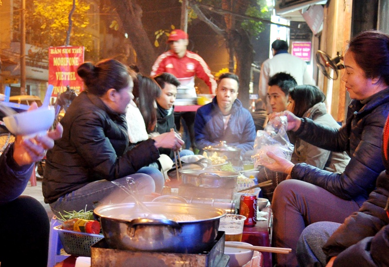 Lẩu riêu cua bò, sườn sụn vỉa hè