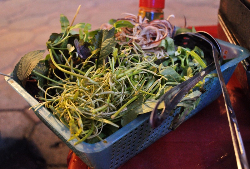 | Rổ rau đúng điệu có cả rau muống chẻ. |