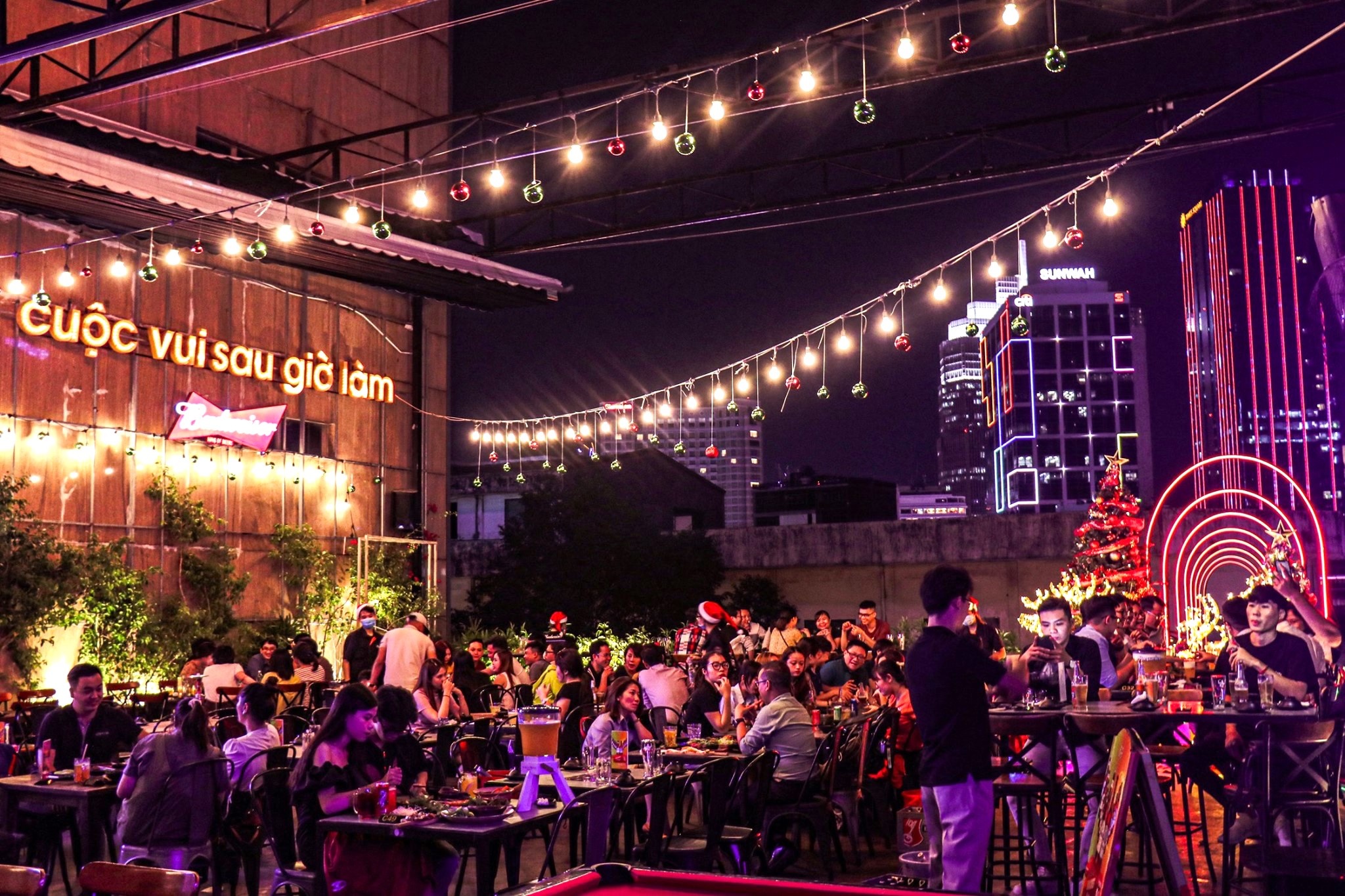 | BA GÁC nướng & bia là địa điểm lý tưởng để giới trẻ tụ họp dịp cuối tuần. Nơi đây có không gian thoáng mát, được bao quanh bởi những mảng tường gạch thô và xen kẽ là sắc xanh của cây lá. Ngoài vị trí ngồi có view sân thượng, bạn cũng có thể chọn không gian riêng tư với 10 khách/phòng. Ảnh: BaGacnuongvabia. |