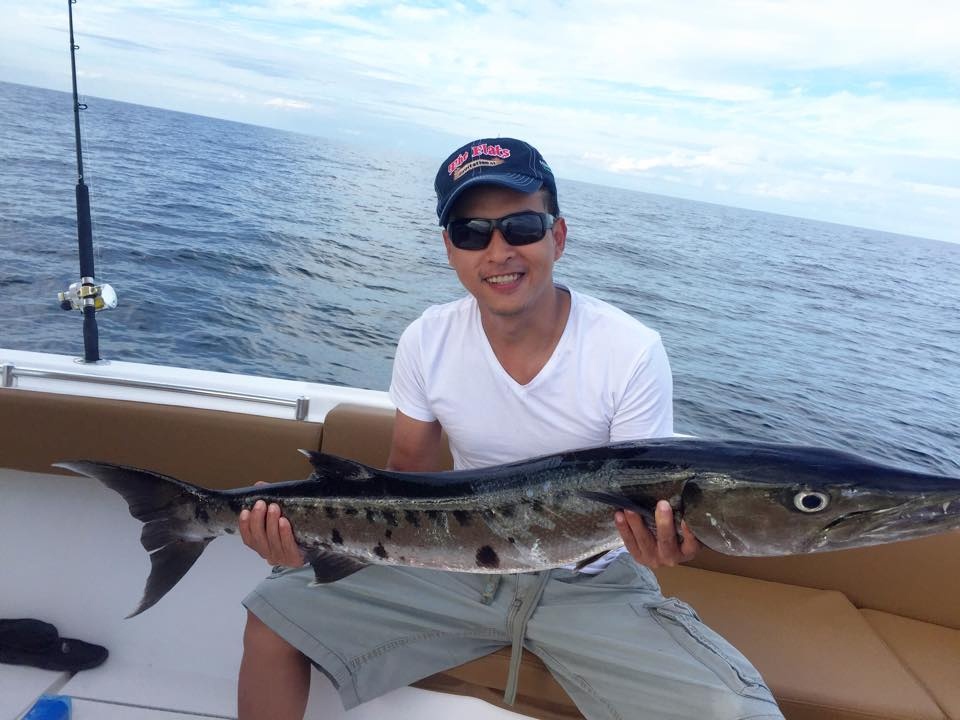 | Hồ Quang Hiếu câu cá ở Mỹ. |