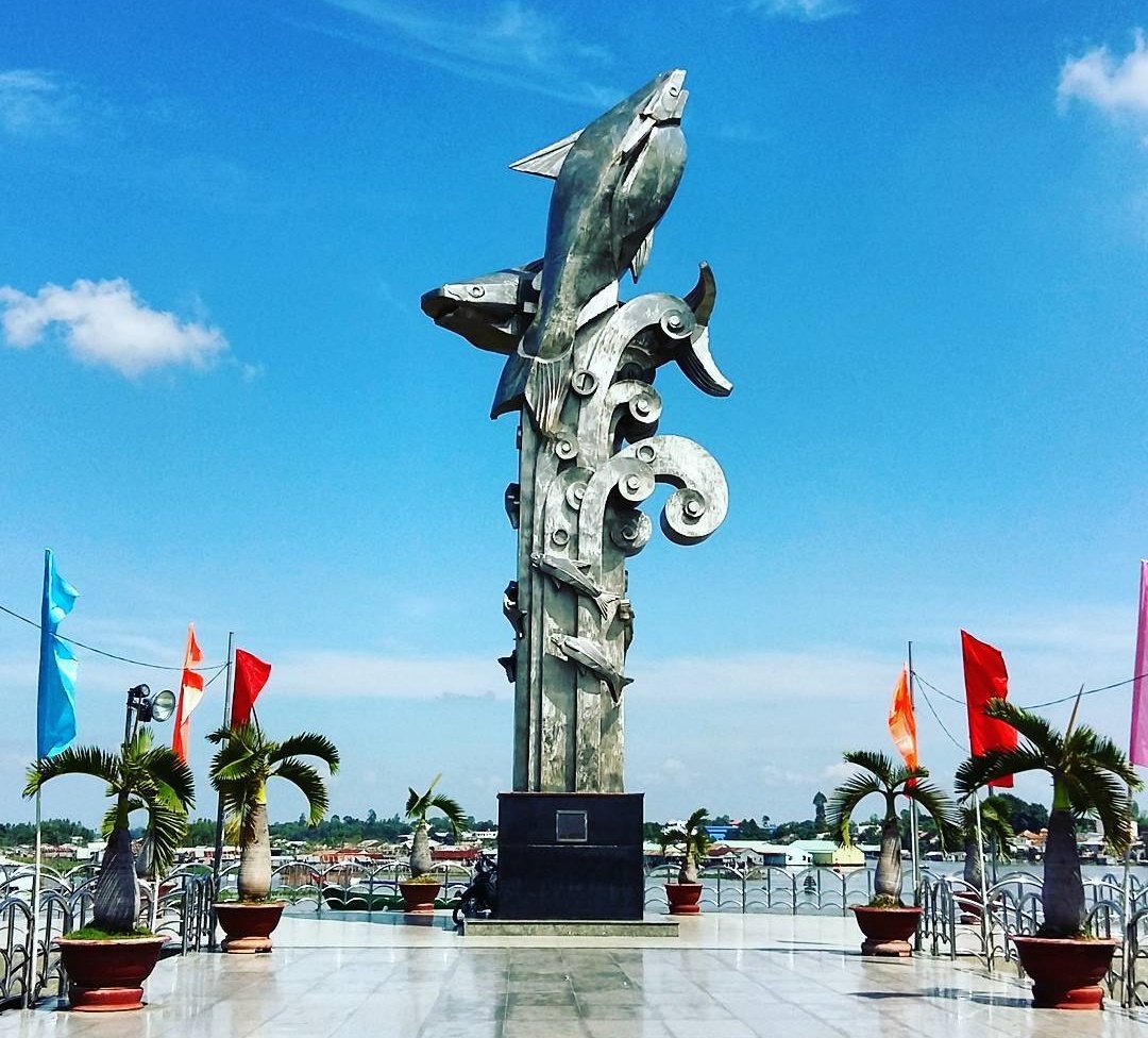 Tượng đài cá basa ở TP Châu Đốc, tỉnh An Giang cao khoảng 14 m, tọa lạc tại vị trí ngã ba sông thoáng đãng. Vùng cửa sông Châu Đốc vốn là nơi có nghề nuôi cá basa hình thành đầu tiên ở Việt Nam, mang lại nguồn thực phẩm thơm ngon, có giá trị kinh tế... Công trình thể hiện hình ảnh đàn cá basa 9 con vươn mình mạnh mẽ giữa sóng nước, gợi nên sức sống của vùng đất "Chín Rồng". Ảnh: Jujudemilneuf. |