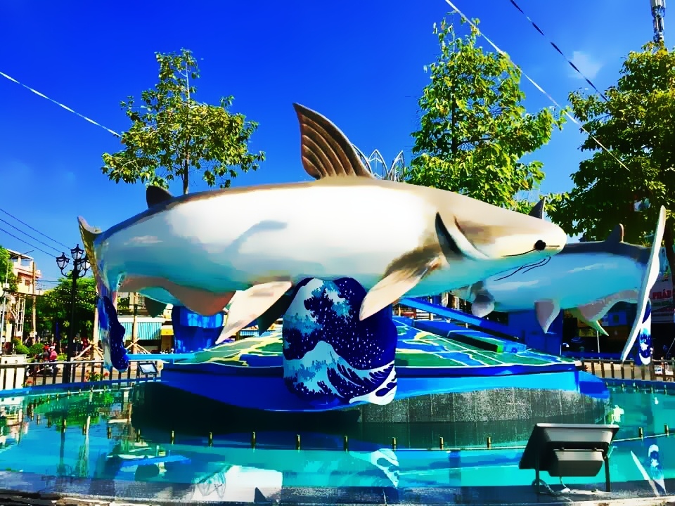 Biểu tượng cá tra Việt Nam được dựng ở hoa viên trước chợ thị xã Hồng Ngự, tỉnh Đồng Tháp, nơi vốn tự hào là "thủ phủ cá tra Việt Nam". Công trình khánh thành năm 2017, đúng dịp kỷ niệm 200 năm vùng đất Hồng Ngự, gồm các hạng mục như 3 con cá tra, mỗi con dài 3,9 m, đài phun nước, đèn nghệ thuật, bia tiểu sử cá tra Việt Nam... Ảnh: TH Tân Hội. |