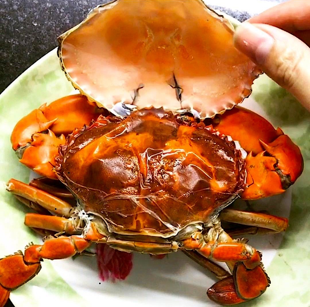 Cua biển sắp đến ngày lột xác (lột vỏ) để lớn lên còn được gọi là cua cốm hay cua hai da, có lớp vỏ ngoài cùng khi bong ra sẽ để lộ lớp vỏ non mềm. Sản vật cua này ở Cà Mau chắc thịt, đầy gạch, hương vị đặc biệt thơm ngon, hấp dẫn, có thể nướng, luộc, hấp, chiên... Ảnh: Hanny1410. |