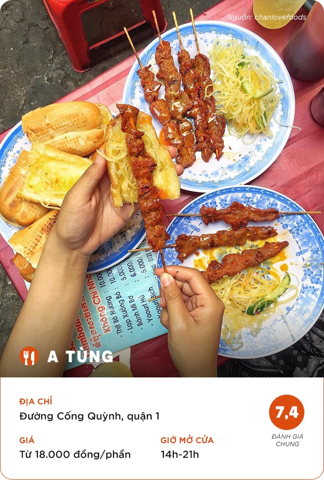 Banh Vy Boi: "Mình là fan của quán từ lâu, một xiên bò 12.000 đồng chất lượng. Điểm trừ là ko gian quán bé, ăn ngồi lâu hơi ngại".