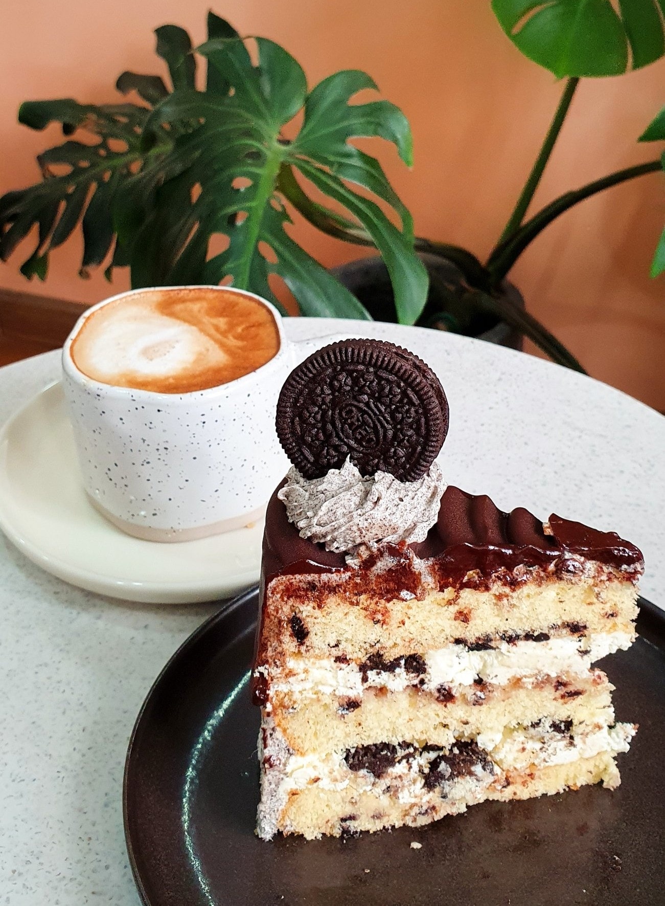 - Bánh pumpkin có cốt bánh mềm, ẩm ăn cùng bơ phô mai beo béo. S’more brownie vị hơi ngọt. Bánh tart Malva với hương vị nhẹ nhàng, thanh tao, phủ bên trên là lớp melktert mịn như bánh flan. Cà phê pha không quá ngọt nên không gây ngán khi uống.