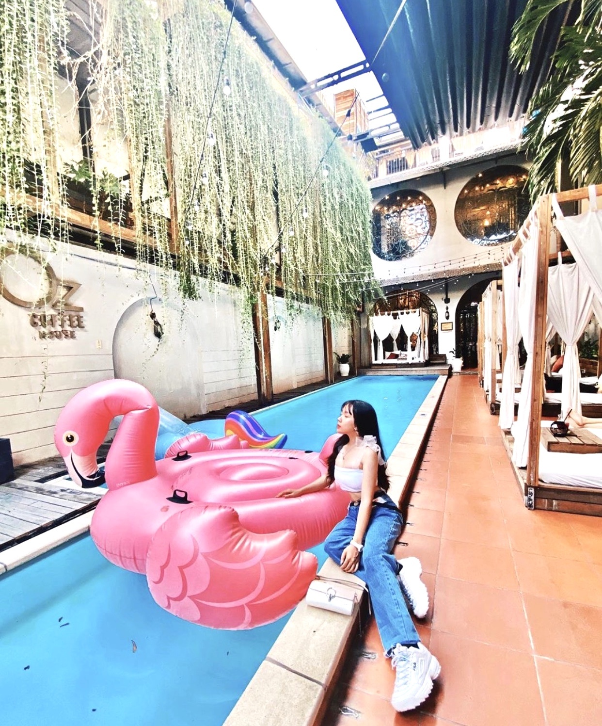Phong cách thiết kế của quán pha lẫn nét cổ điển và hiện đại. Hồ bơi xanh mát là điểm nhấn hút các bạn trẻ check-in khi đến quán. Bạn sẽ có cảm giác như lạc vào miền nhiệt đới với hơi thở tràn đầy năng lượng trong khoảng thời gian trải nghiệm ở đây. Ngoài ra, các thức uống tại tiệm được thực khách ưa chuộng bởi sự trang trí tinh tế và món ăn được chuẩn bị kỹ lưỡng. Ảnh: Heidyamin, Minkhanhh. |