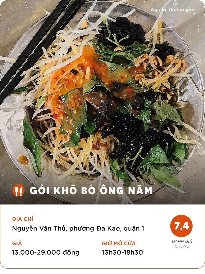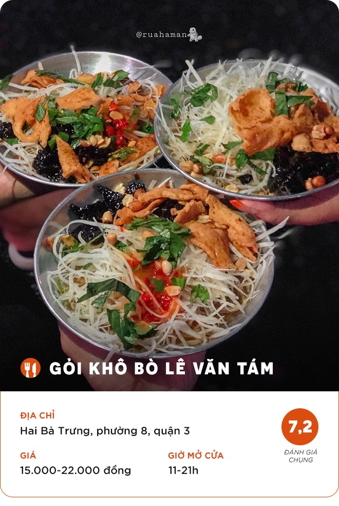 Cách làm đơn giản, nguyên liệu quen thuộc, giá cả bình dân giúp gỏi khô bò trở thành đồ ăn vặt được lòng nhiều người ở TP.HCM. Khi thưởng thức, bạn sẽ cảm nhận được độ giòn của đu đủ, miếng khô bò đậm đà cùng nước chấm chua ngọt.
