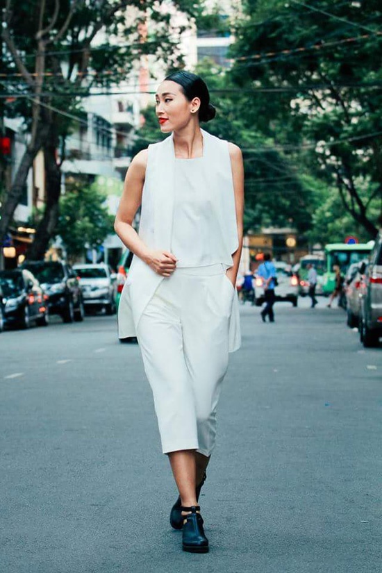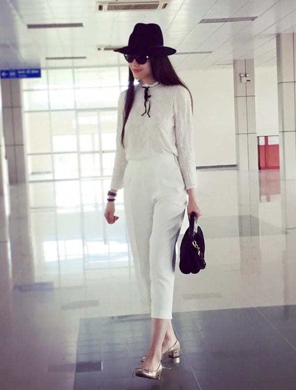 | 2. Trắng cả cây: Mai Phương Thúy khoe vẻ dịu dàng với cả cây trắng khi xuống phố. |