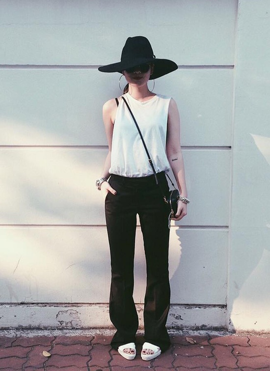 | Yến Nhi đầy cá tính với mẫu quần ống rộng mix kèm áo khoét nách trẻ trung. |