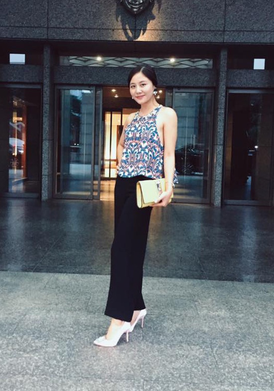 | Thu Hằng khoe vẻ thanh lịch trong set đồ sơ mi quần âu dịu dàng. |