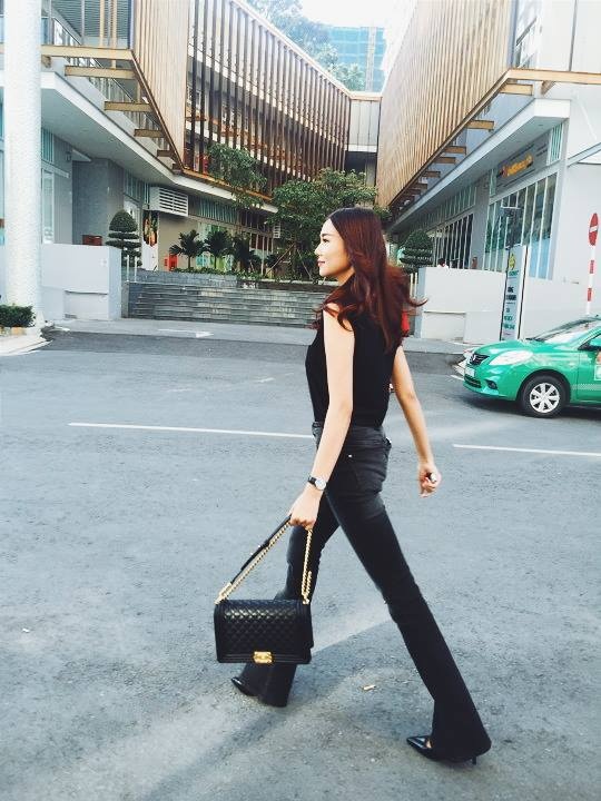 | Hà Hồ khoe chân dài miên man trong mẫu quần ống loe. |