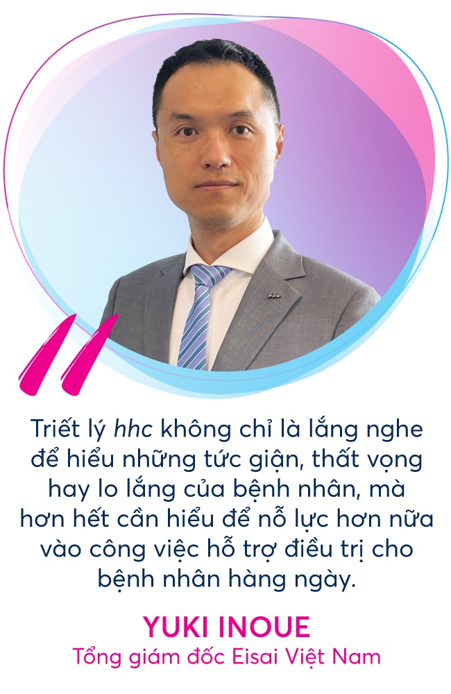 Ông Yuki Inoue chia sẻ: “Với hhc, Eisai mong muốn đóng góp và cung cấp những sáng kiến điều trị bệnh hữu dụng, tuân theo giá trị pháp luật và nhân văn. Đồng thời, hhc còn mang đến các phương pháp chăm sóc sức khỏe tích hợp hiệu quả”.