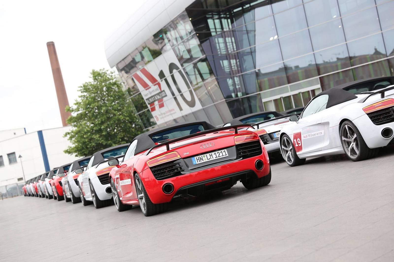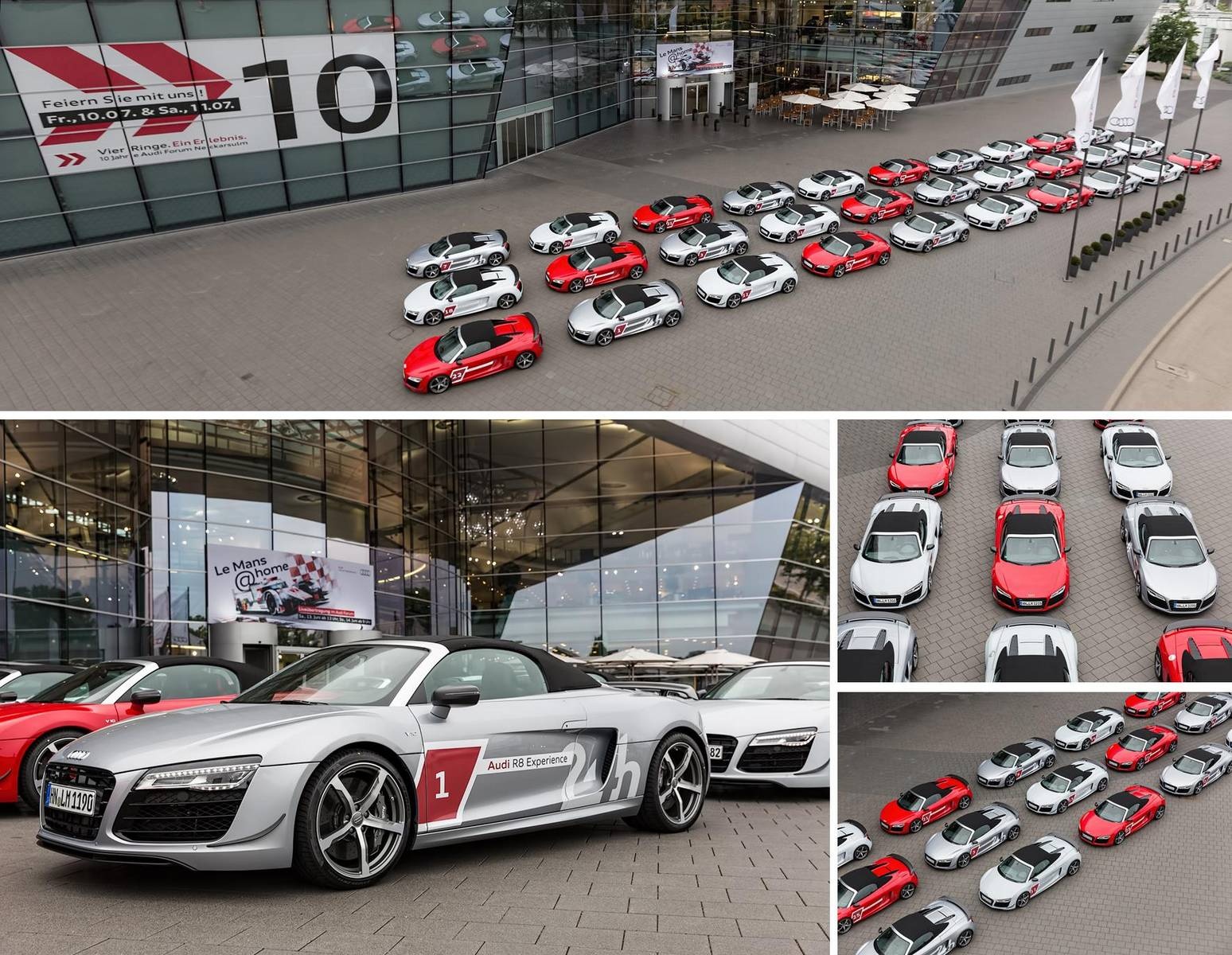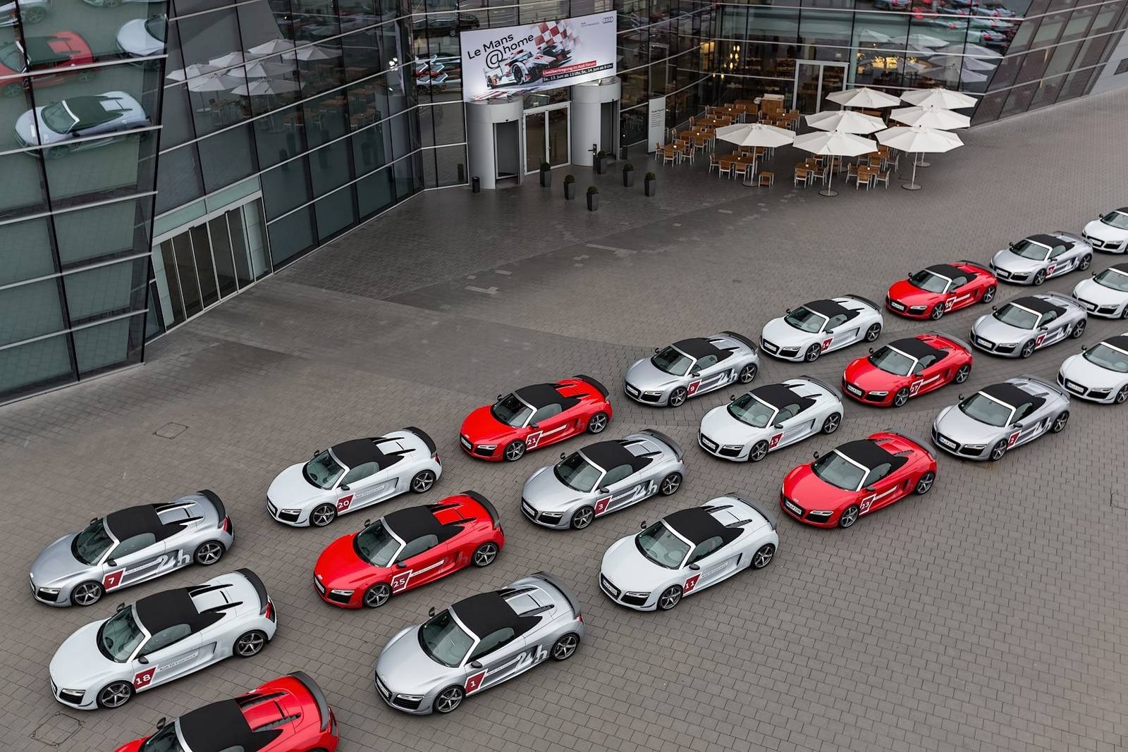 Để kỷ niệm sự hiện diện của Audi tại giải đua 24 Hours of Le Mans, một đại lý của hãng đã tập hợp 30 siêu xe Audi R8 mui trần.