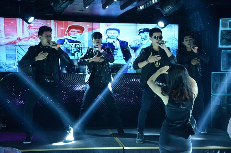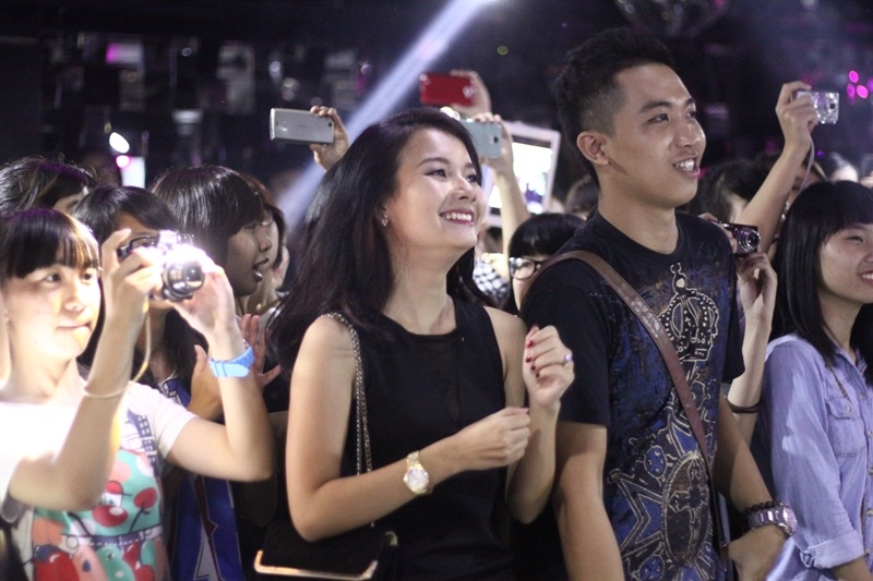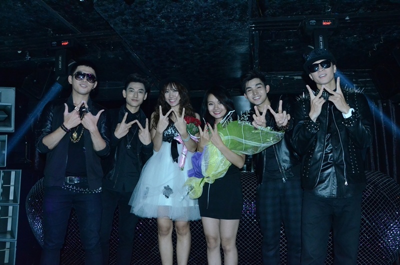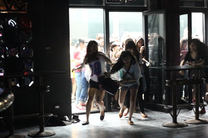 Cánh cửa kính nối căn phòng với không gian “buổi tiệc” bên ngoài như muốn vỡ tung khi cả trăm fan nữ của nhóm 365 ùa vào như ong vỡ tổ vây kín lấy sân khấu. Không khí bên trong đang yên ắng đột ngột bị hâm nóng bởi những tràng pháo tay, tiếng hò hét liên tục của các fan Hà thành.