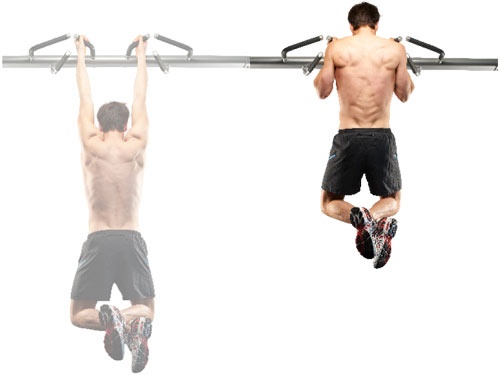 Đu xà đơn: Hai tay nắm xà, rộng hơn độ rộng vai, lòng bàn tay hướng ra ngoài. Thả lỏng cơ thể theo tư thế treo tự do. Từ từ co đầu gối và đu người lên cao. Giữ trong vài giây rồi hạ thấp mình về vị trí ban đầu. Chỉ bằng tư thế đu người lên xuống, mọi nhóm cơ đều phải hoạt động, đặc biệt là cơ tay và bụng. Ảnh: Idieafit.
