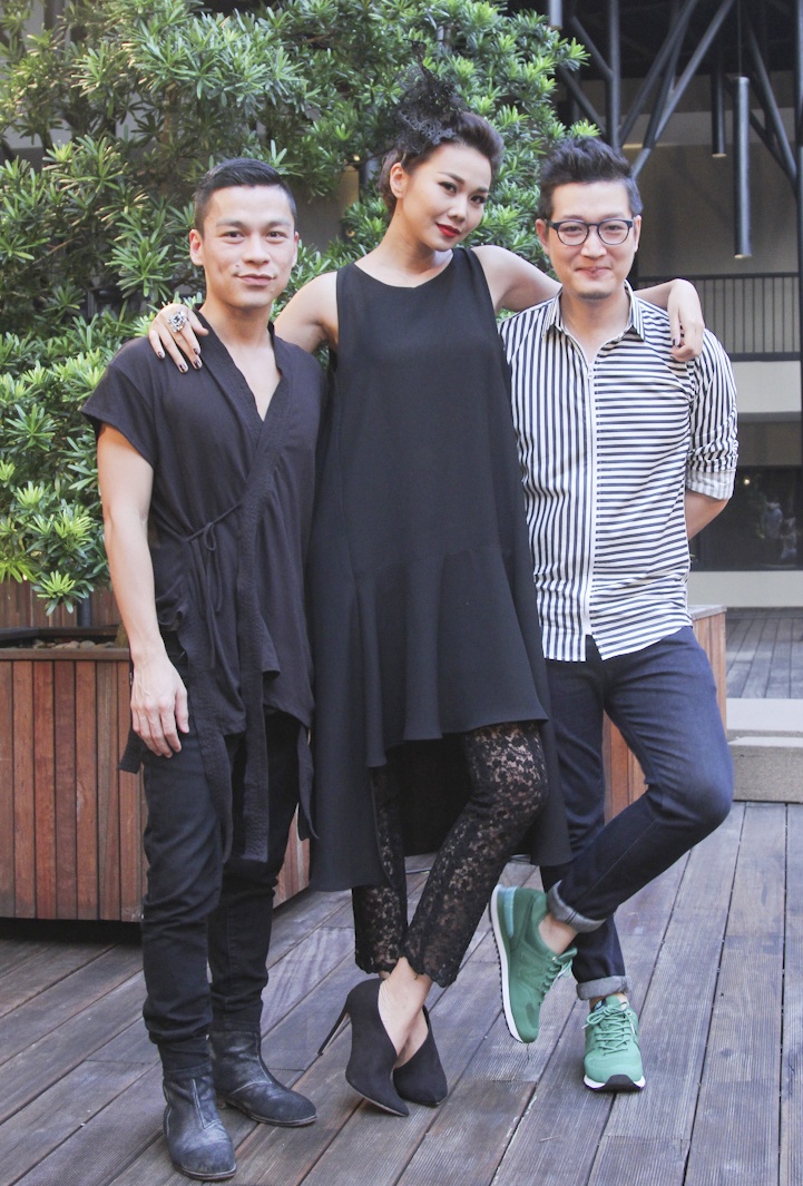 | Nhà thiết kế Adrian Anh Tuấn diện trang phục ton sur ton cùng siêu mẫu. Nhiếp ảnh gia Samuel Hoàng nam tính với sơ-mi sọc kẻ, quần jeans và giày thể thao. |