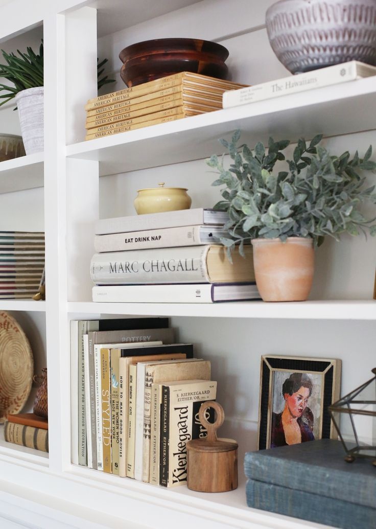 Bạn có thể sắp xếp sách gọn gàng lên một chiếc kệ và bổ sung thêm những món đồ khác như: tranh, khung ảnh,... tạo ra một điểm nhấn khi trang trí nhà cửa.