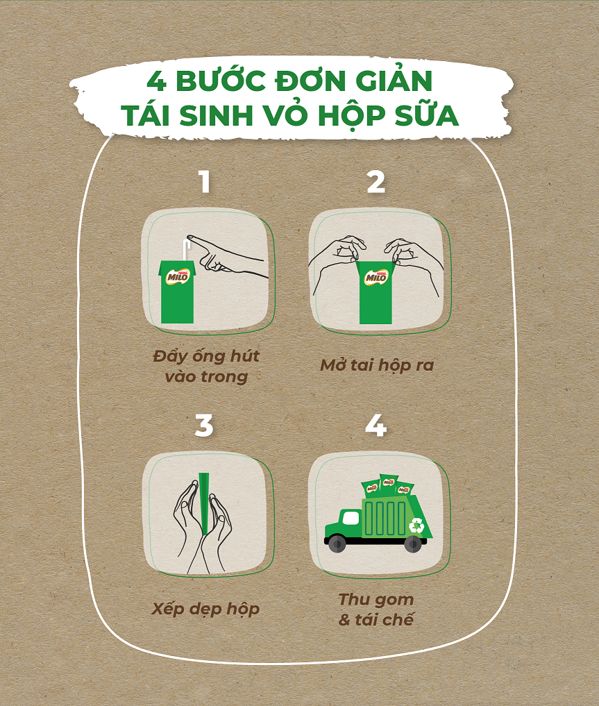 4 bước tái sinh vỏ hộp sữa để bảo vệ môi trường