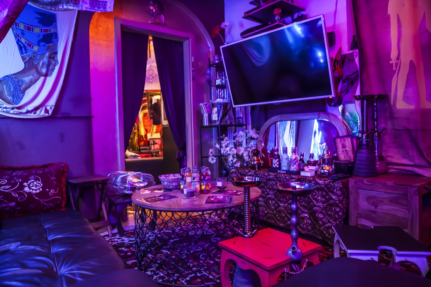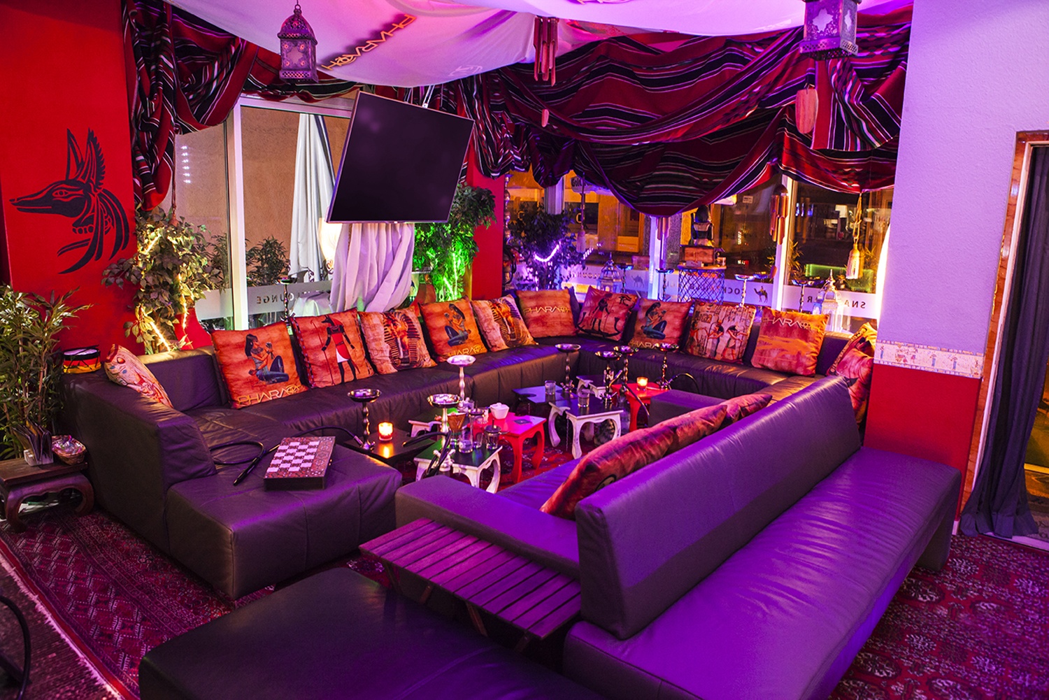 Pharaoh Lounge: Với những hoạ tiết Ai Cập trải dài từ hẻm vào quán tạo sự tò mò và thu hút. Không gian quán được chia nhỏ thành nhiều nhỏ phù hợp với số lượng của từng nhóm khách.