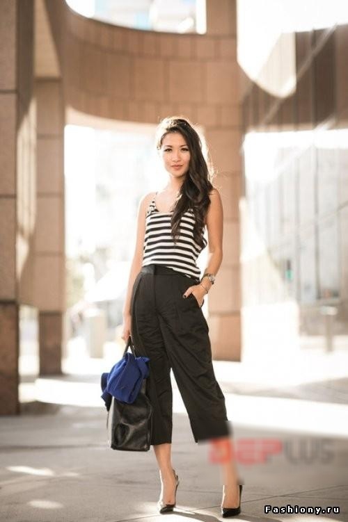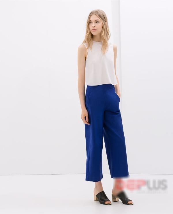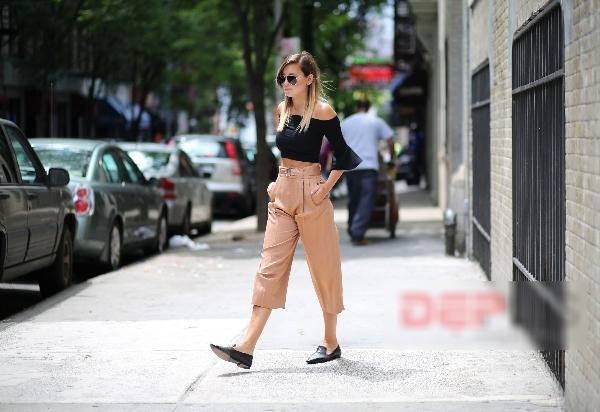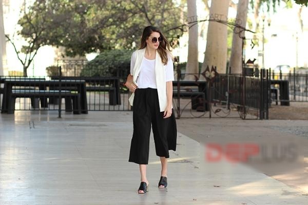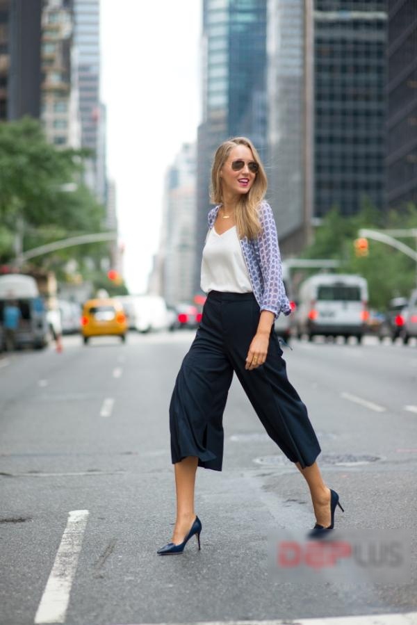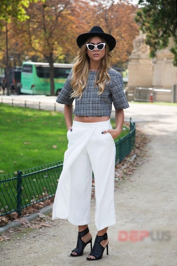 Nếu mix đồ không khéo, bạn sẽ tự “cộng” thêm cho cơ thể mình vài cân bởi quần culottes có phần ống rất rộng. Cách đơn giản nhất khi phối đồ với quần culottes là công thức: áo croptop kết hợp với giày cao gót. Bạn vừa khoe được vòng eo nóng bỏng của mình, vừa giúp vóc dáng thanh thoát hơn.