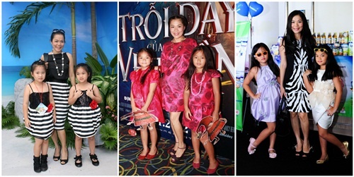 | Suli - Suti làm dáng bên cạnh mẹ Thúy Hạnh. 2 cô công chúa rất đáng yêu, tự nhiên và tạo dáng rất dễ thương. Cô luôn chọn những tong màu tươi sáng và trẻ trung cho Suli - Suti như hồng, đỏ, xanh… |
