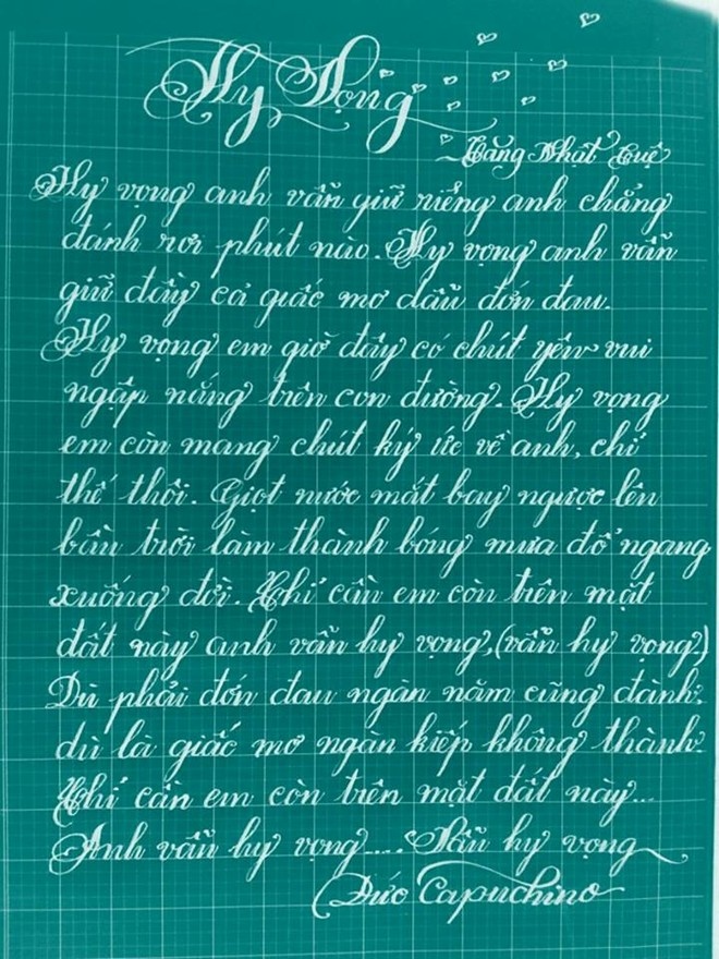 | Dù không theo ngành sư phạm nhưng mỗi ngày Đức đều luyện chữ mỗi khi cảm thấy căng thẳng, mệt mỏi. Ảnh: NVCC. |