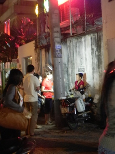 | Xe bắp xào trứ danh "núp lùm" sau côt điện phía đường Phạm Ngọc Thạch của cà phê Gió Bấc. |