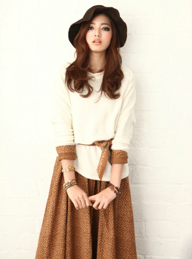 Váy xòe và chiếc áo len trắng sáng là sự kết hợp nhẹ nhàng và nữ tính, nhưng vẫn giúp bạn nổi bật và ấn tượng. |