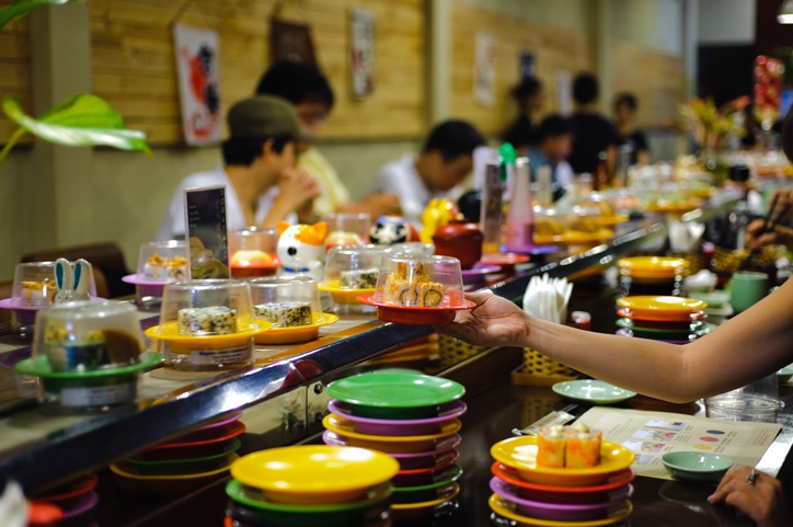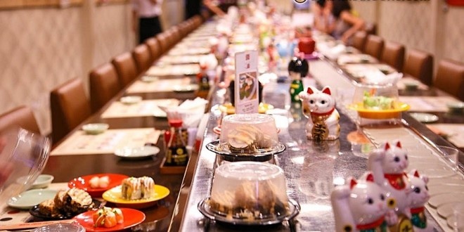 Tham gia buffet sushi băng chuyền, chúng ta không chỉ khám phá được thế giới sushi đầy màu sắc, mà còn có thể dùng tay nhón bất kỳ loại sushi mình yêu thích để nhấm nháp. Với cách thưởng thức này, bạn có thể thử từ những cuốn sushi giá rẻ như bơ, thanh cua, rau củ đến những dòng sushi cao cấp như cá hồi, lươn nướng, các loại trứng là lạ. Bên cạnh sushi, nhà hàng cũng kèm hàng loạt món của đất nước mặt trời mọc như mì, bánh xèo, tempura… để bạn thưởng thức.