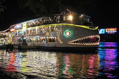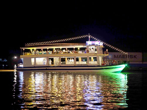 Buffet trên tàu giống như một cuộc du lịch ẩm thực nhỏ. Đầu tiên là góc nhìn khám phá Sài Gòn từ bờ sông với con đường Tôn Đức Thắng nhộn nhịp, những khách sạn lấp lánh ánh đèn hay tòa nhà Bitexco lung linh trong đêm. Khi tàu bắt đầu chạy, cũng là lúc bạn vừa thưởng thức những món ăn ngon được trình bày đẹp mắt, vừa cảm nhận những đợt gió mát lạnh từ sông, vừa được xem những khung cảnh lần lượt đập vào mắt rồi trôi theo tiếng nước.