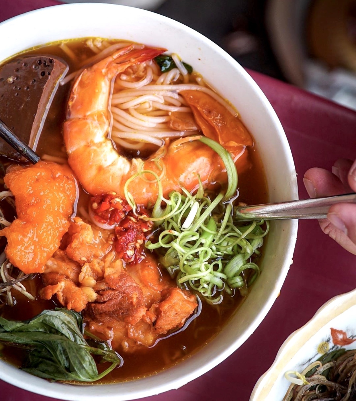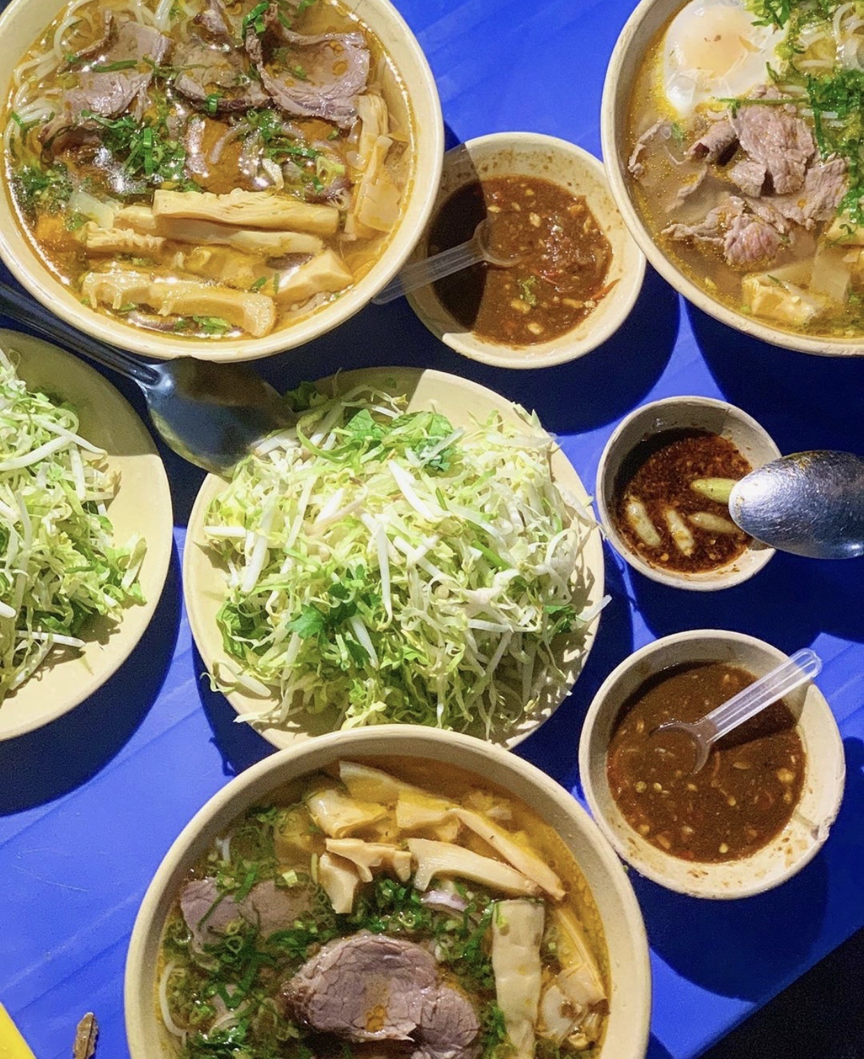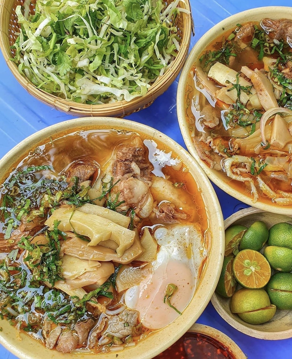 | Đường Trần Bình Trọng, quận 5, là tọa độ bạn có thể tìm thưởng thức bún măng bò ăn kèm rau sống hấp dẫn. Hầu hết khách từng trải nghiệm hài lòng bởi tô bún có nước dùng đậm đà quyện trứng gà lòng đào thơm béo. Ảnh: Hoanglam.foodie, Love_food_love_kitchen. |