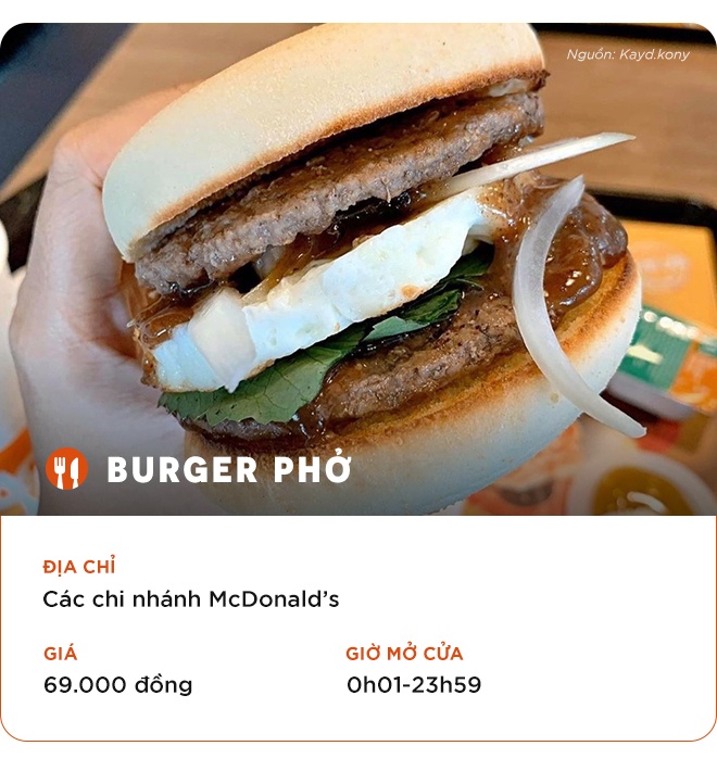 Hoàng Trung Quân: "Một phần burger phở là 69.000 đồng. Nguyên liệu gồm hai lớp thịt, trứng, hành tây, ngò gai, sốt vị phở. Mình đánh giá cao phần nước sốt khi kết hợp giữa hai nền ẩm thực Á - Âu. Ăn phần này mình recommend mọi người lấy sốt mù tạt mật ong. Giá 69.000 đồng cho chiếc bánh này mình thấy hơi đắt, ăn no nhưng sức mình thì chưa đã lắm. Theo mình, tầm giá 50.000-55.000 đồng là ok.