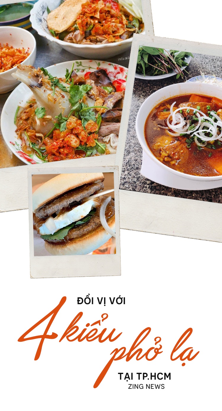 Thiên đường ẩm thực TP.HCM hấp dẫn thực khách bởi món ngon khắp mọi vùng miền cùng nhiều sáng tạo độc đáo. Tại đây, bạn có thể thử đồ ăn nhanh từ phở như pizza, burger. Sự kết hợp giữa phở và sốt chua, bò kho cũng là các phiên bản lạ vị không kém.