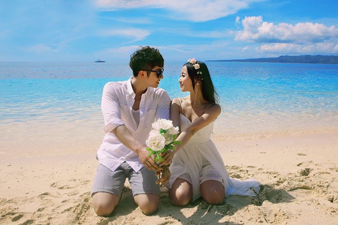 | Kết hợp thêm hoa cầm tay cùng tông màu, bạn sẽ sở hữu những bức ảnh cưới rất “đắt giá”, giúp lưu lại khoảng khắc hạnh phúc khó quên. |
