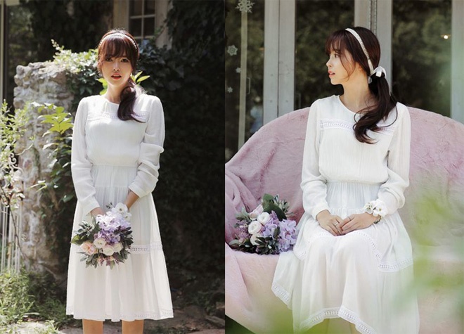 | 1. Cài vòng hoa trắng. Thay vì sử dụng hoa nhiều màu sắc, xu hướng vòng hoa cô dâu năm nay thường thiên về một màu chủ đạo, trắng hoặc hồng nhẹ nhàng, thanh thoát. Nhờ đó cô dâu cũng thật trẻ trung, nổi bật giữa thiên nhiên tươi đẹp. |
