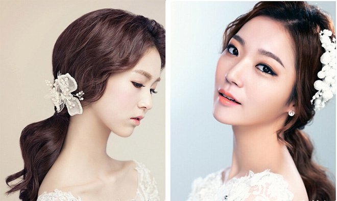 | Cách làm tóc này rất phù hợp với các buổi chụp ảnh cưới ngoại cảnh, vì tạo kiểu đơn giản, dễ thay hoa cài để tạo thành nhiều phong cách khác nhau. |