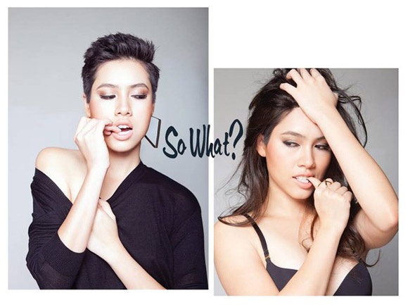 | Phương Linh vốn được biết tới với phong cách nữ tính, sang trọng bỗng làm công chúng ngạc nhiên khi bất ngờ thay đổi sang hình tượng cá tính, có chút "nổi loạn" với tóc tém vuốt keo. |