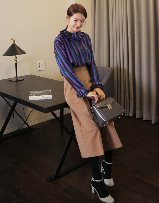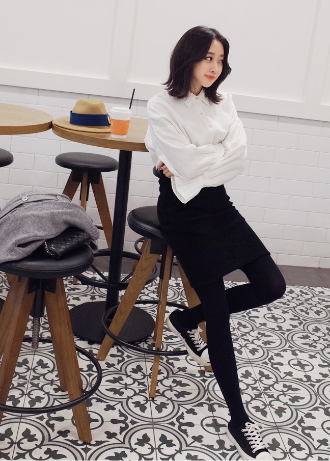 | Bạn cũng có thể chọn sơ mi tay loe mix kèm chân váy và sneakers trẻ trung. |