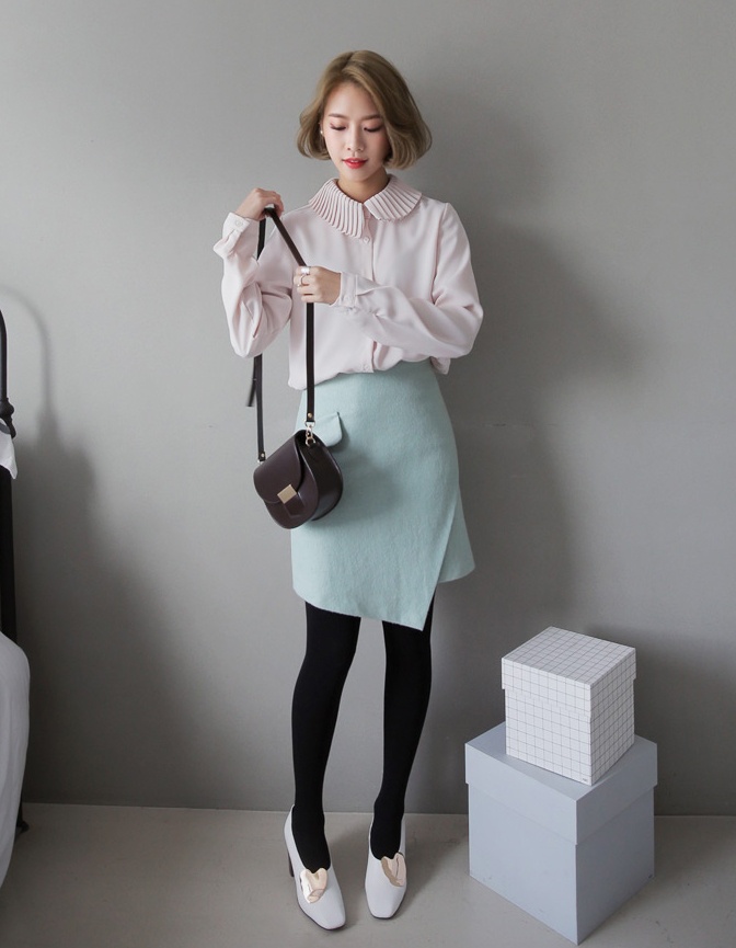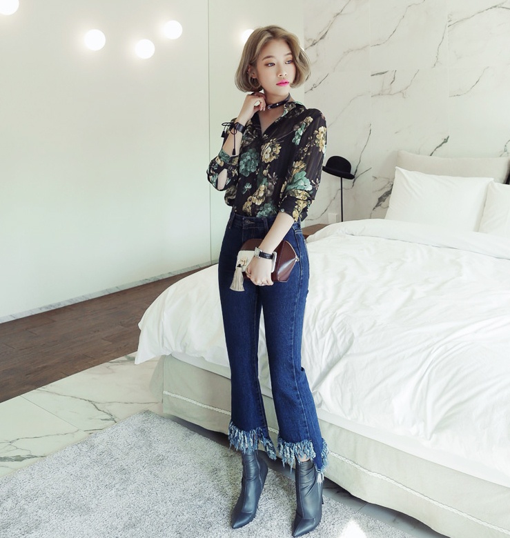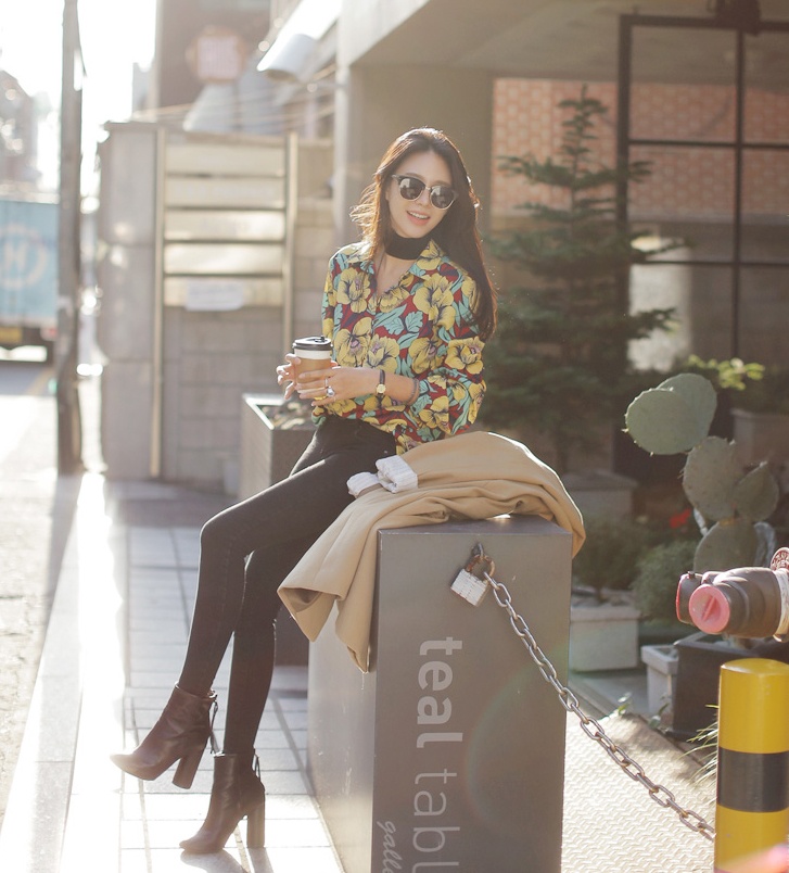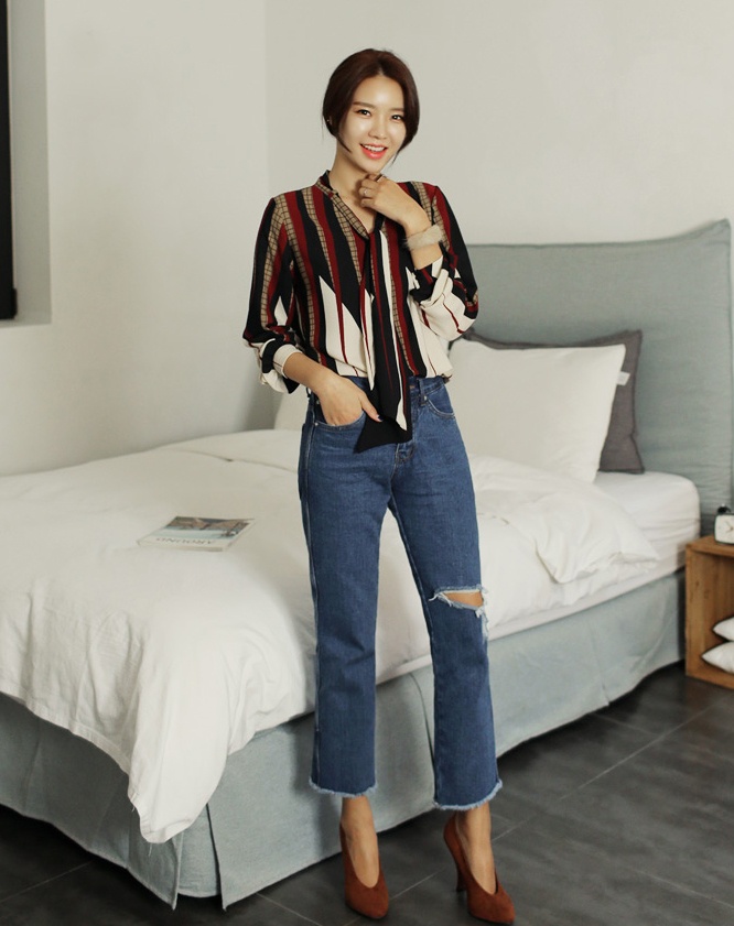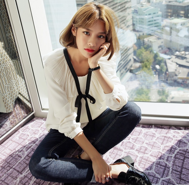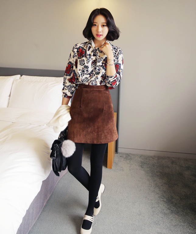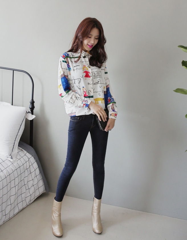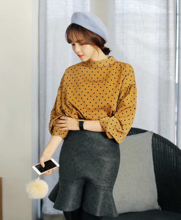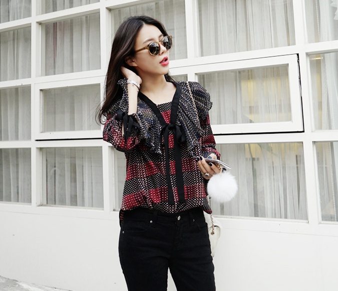Xu hướng sơ mi họa tiết hay sơ mi kết bèo được các bạn gái xứ kim chi rất ưa thích trong mùa xuân.
