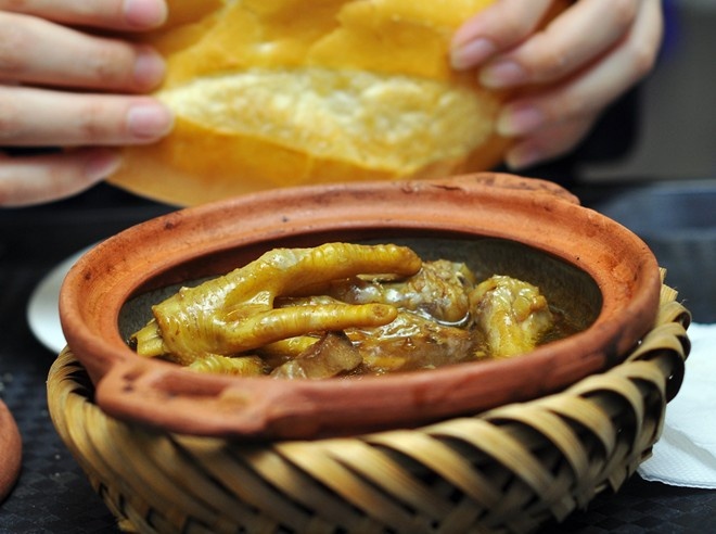 | Bánh mì chân gà mật ong: Mới mẻ, lạ miệng, bánh mì chân gà mật ong đun trong niêu nóng hổi cũng làm không ít đôi bạn mê mẩn. |