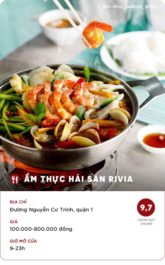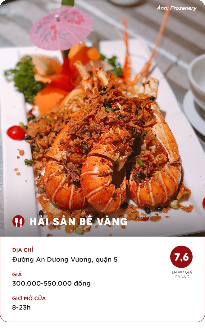 Vy Nguyên Minh: "Quán nằm ngay trung tâm quận 1, cách khu Bùi Viện khoảng 5 phút đi bộ. Nhà hàng có không gian sân thoáng mát, thích hợp cho những ai thích không khí ngoài trời, ngại bụi. Mỗi món có vị riêng. Nhìn chung hải sản rất tươi. Phục vụ nhanh. Đồ ăn nóng và đa dạng".