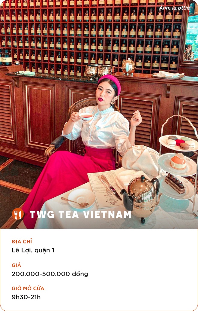 Quán nằm ngay trung tâm quận 1, không gian rộng rãi, đậm chất cổ điển với ghế nhung, khăn trải bàn trắng... Ngoài không gian thanh lịch, sang trọng, quán còn gây ấn tượng với thực khách bằng menu hàng trăm loại trà khác nhau.