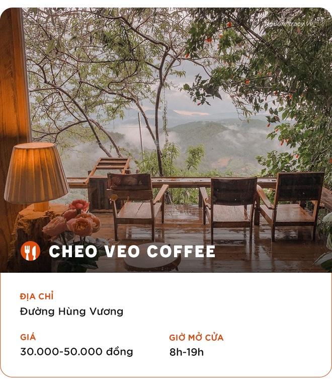 Với không gian mở, quán phù hợp với các tín đồ thích săn mây và chiêm ngưỡng vẻ đẹp của hoàng hôn. Ngoài cà phê và trà, tiệm còn bán các loại nước ép tươi mát.