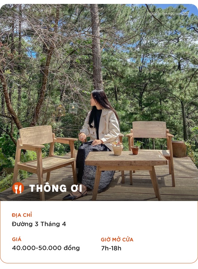 Quỳnh Phương: "Đường vào quán hơi khó tìm, nhưng bù lại trải nghiệm thật đáng giá. Không gian yên tĩnh giữa rừng thông, góc nào cũng xinh xắn, thoảng mùi gỗ thơm. Rừng thông yên tĩnh, trong lành, con người ở đây dễ thương".