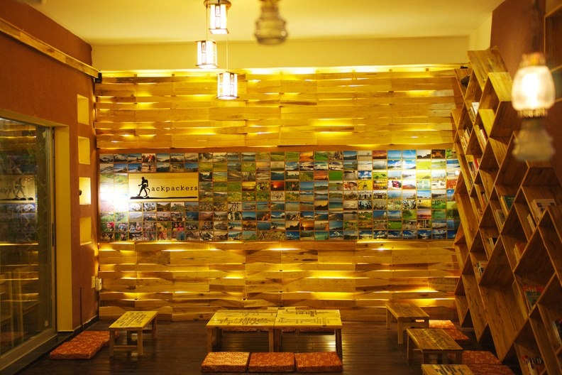 3ackpackers được thiết kế theo phong cách bụi với gỗ pallet. Mỗi bàn được thiết kế thành các địa danh khác nhau của 64 tỉnh thành. Điểm nhấn chính của quán là bức tường tranh: “Xem và đi” gồm 210 bức ảnh về các điểm đến của 3 miền Bắc, Trung, Nam để bạn cảm nhận. Đặc biệt, mỗi bức ảnh đều được đánh mã số. Sau khi xem, nếu thích địa danh trong ảnh, bạn có thể lấy sổ thông tin để xem hướng dẫn cách “phượt” đến đó.