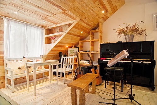Lấy màu trắng làm chủ đạo, The Journey tinh khiết mà ấm áp với những bộ bàn ghế, bức tường trắng phảng phất mùi gỗ… Để tông màu trắng vẫn có thể ấm áp, nổi bật và trẻ trung, người thiết kế đã nhấn nhá hàng loạt vật dụng ngộ nghĩnh như cuộn chỉ, bức tranh dán được xé ra từ sách, những chiếc gối màu hồng.... Những vật dụng lớn hơn như chiếc máy may, cây đàn piano, guitar lại mang tầng nghĩa của quy luật mọi thứ luôn chuyển động.